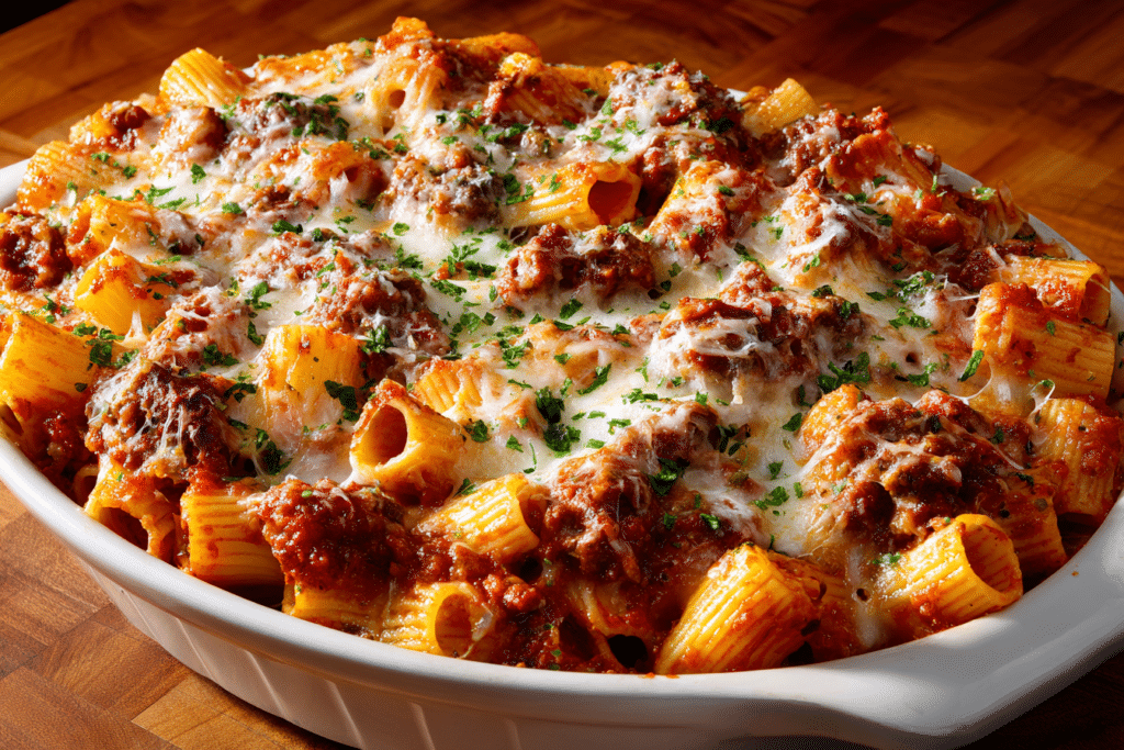 Beef Rigatoni Cheese Bake: 1 Comforting, Golden Casserole Bursting with Meaty, Melty Goodness