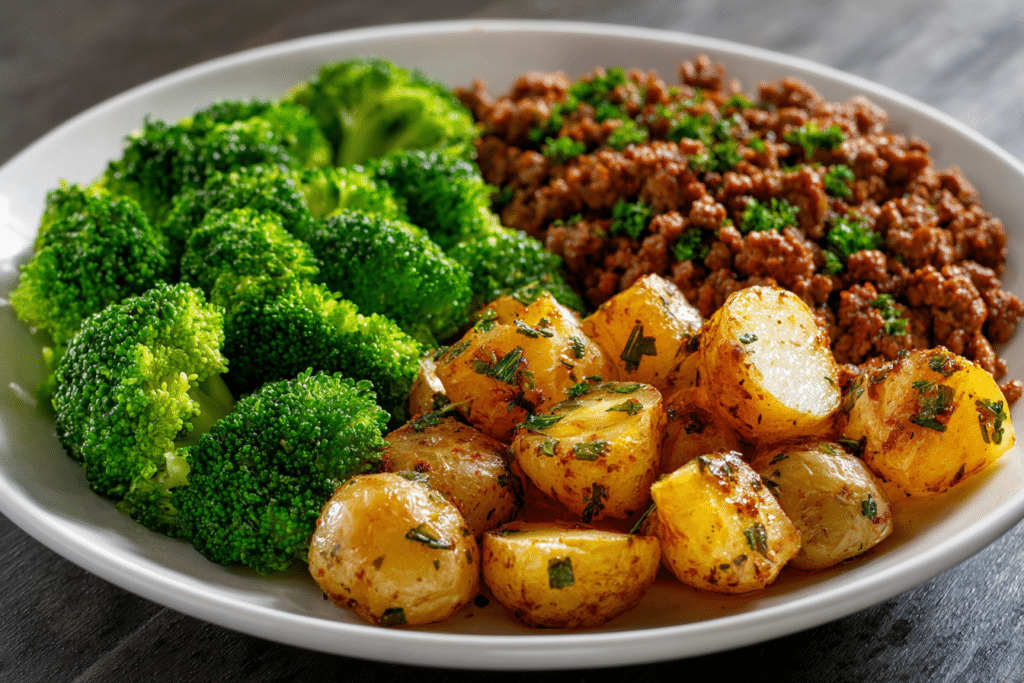 Savory Ground Beef with Herb-Roasted Potatoes & Steamed Broccoli: 1 Balanced, Bold Weeknight Meal Full of Comfort and Color
