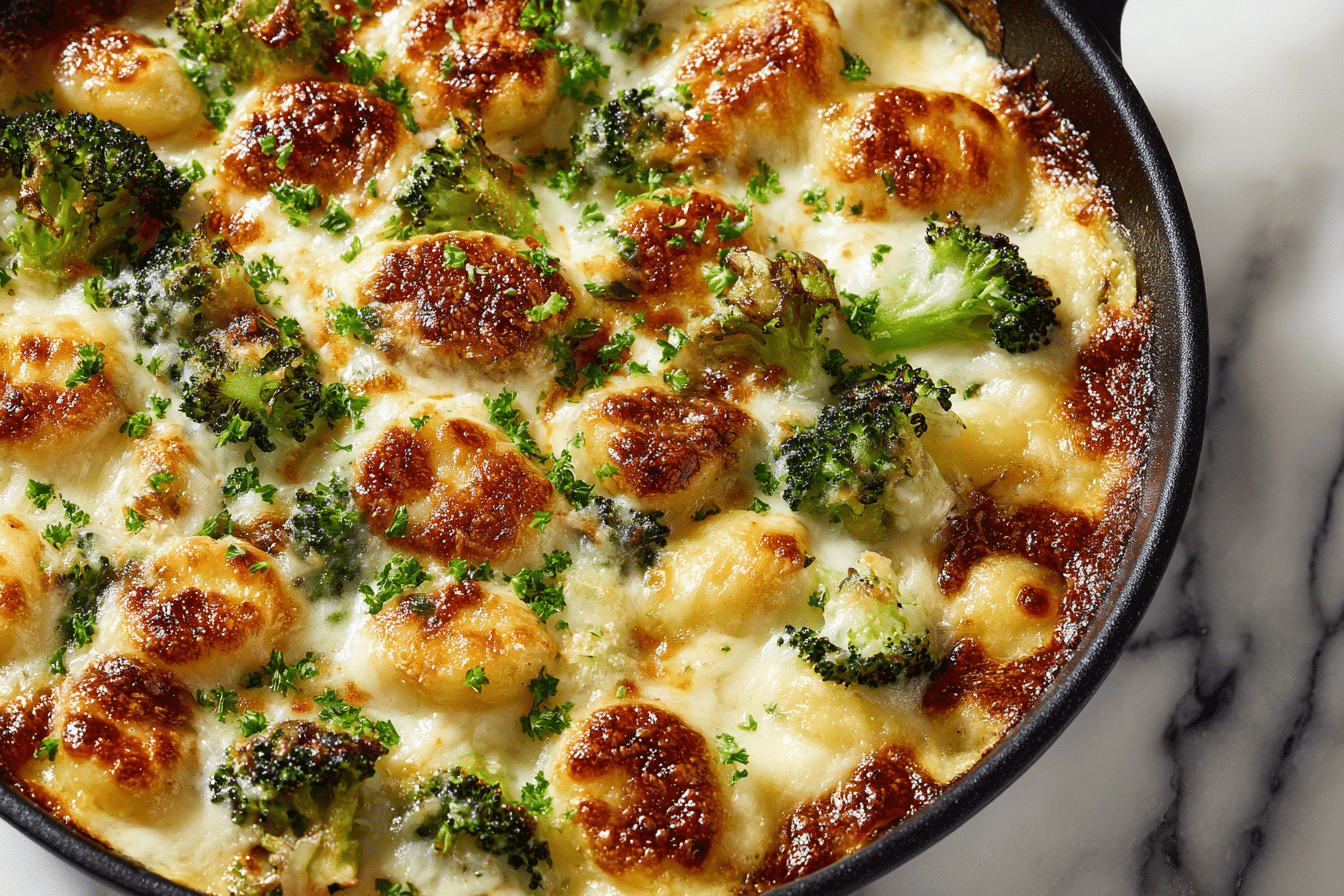 A fast, flavorful one-pan skillet meal with crispy pan-fried gnocchi, sautéed broccoli, garlic, and Parmesan. Ready in just 30 minutes.