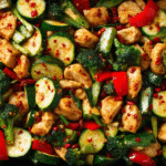 The air fryer works wonders here — it gives the chicken a golden, crispy exterior while locking in moisture, and it roasts vegetables to lightly caramelized perfection without needing much oil. This dish is endlessly customizable, high in protein, and naturally gluten-free and low-carb.