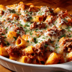 This Beef Rigatoni Cheese Bake is a bubbling, golden masterpiece of hearty ground beef, perfectly cooked rigatoni, rich tomato sauce, and layers of gooey, melted cheese. It’s the kind of dish that fills your kitchen with warmth and your table with satisfied smiles. Perfectly baked until the top is golden and slightly crisp, every bite delivers chewy pasta, savory meat, and cheesy bliss.