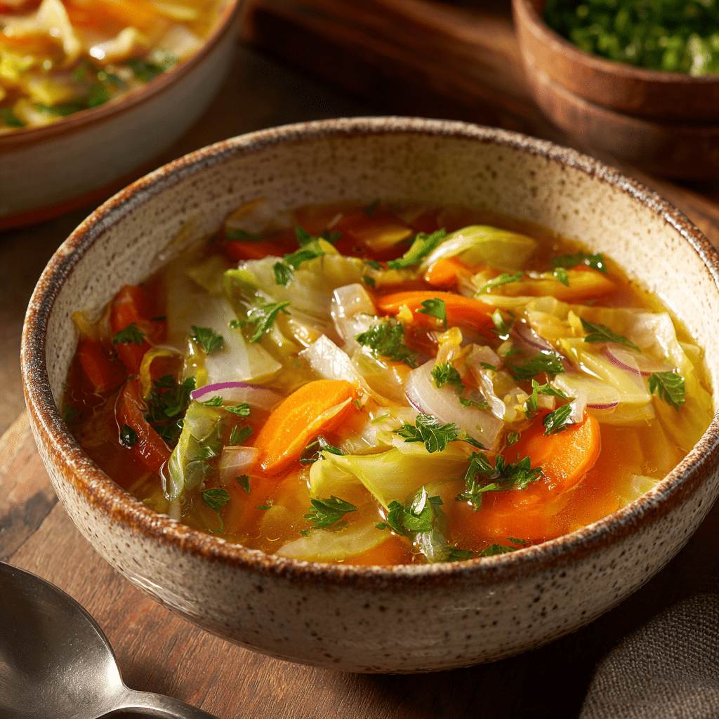 Green cabbage is the base of this soup. It becomes tender and sweet when simmered, adding bulk and fiber. Napa cabbage can also be used for a more delicate texture.