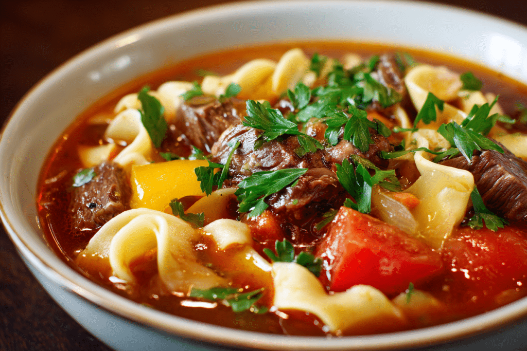 One Pot Tomato Beef Noodle Soup – Cozy, Hearty & Simple