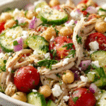 Chicken & Chickpea Salad is one of those all-in-one meals that’s as nourishing as it is refreshing. Packed with lean protein, fiber-rich chickpeas, crisp vegetables, and a zesty dressing, this Mediterranean-inspired salad is perfect for lunch prep, light dinners, or a satisfying post-workout meal.