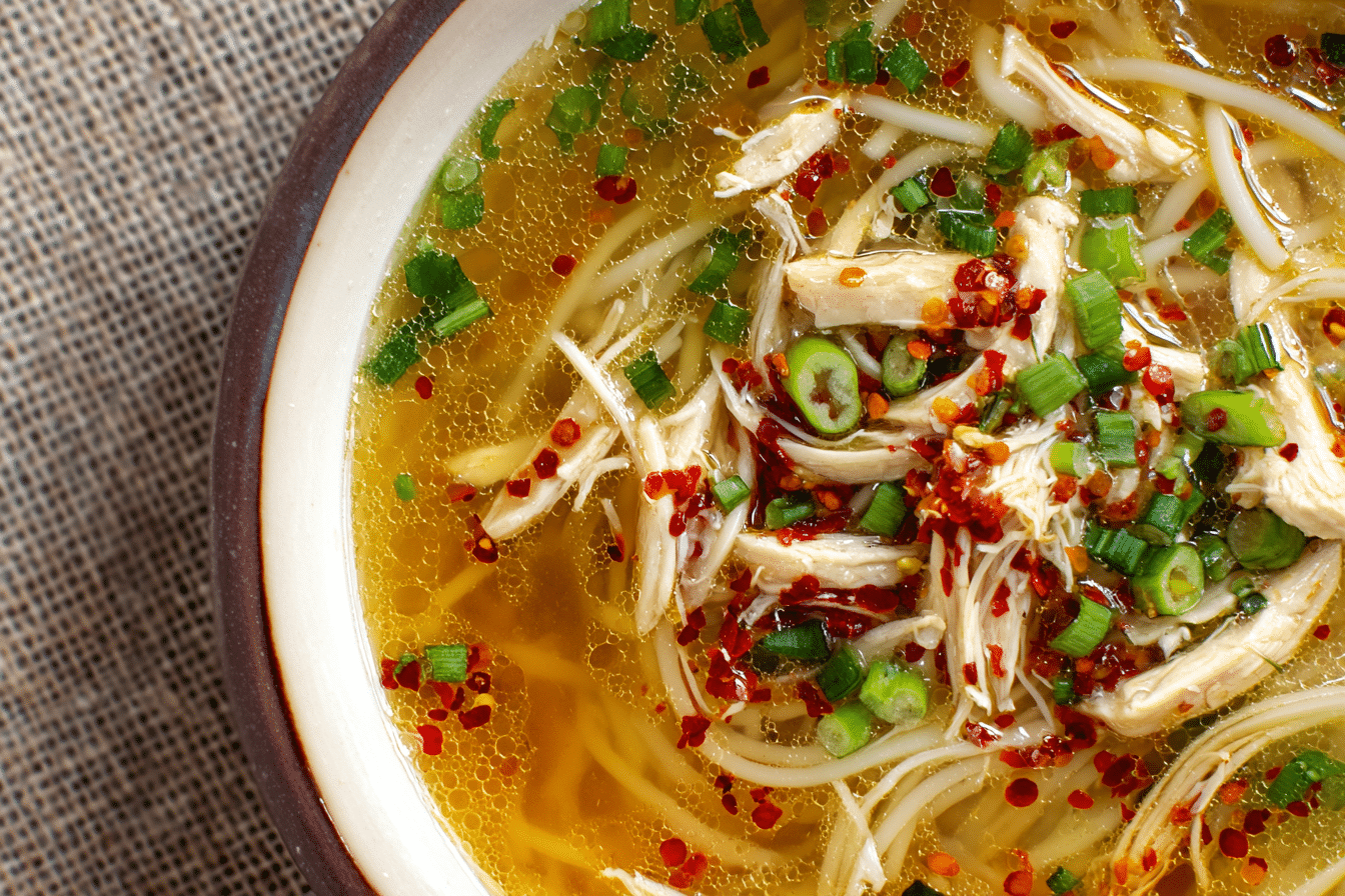 Classic Ginger Garlic Chicken Noodle Soup – Comforting & Immune-Boosting