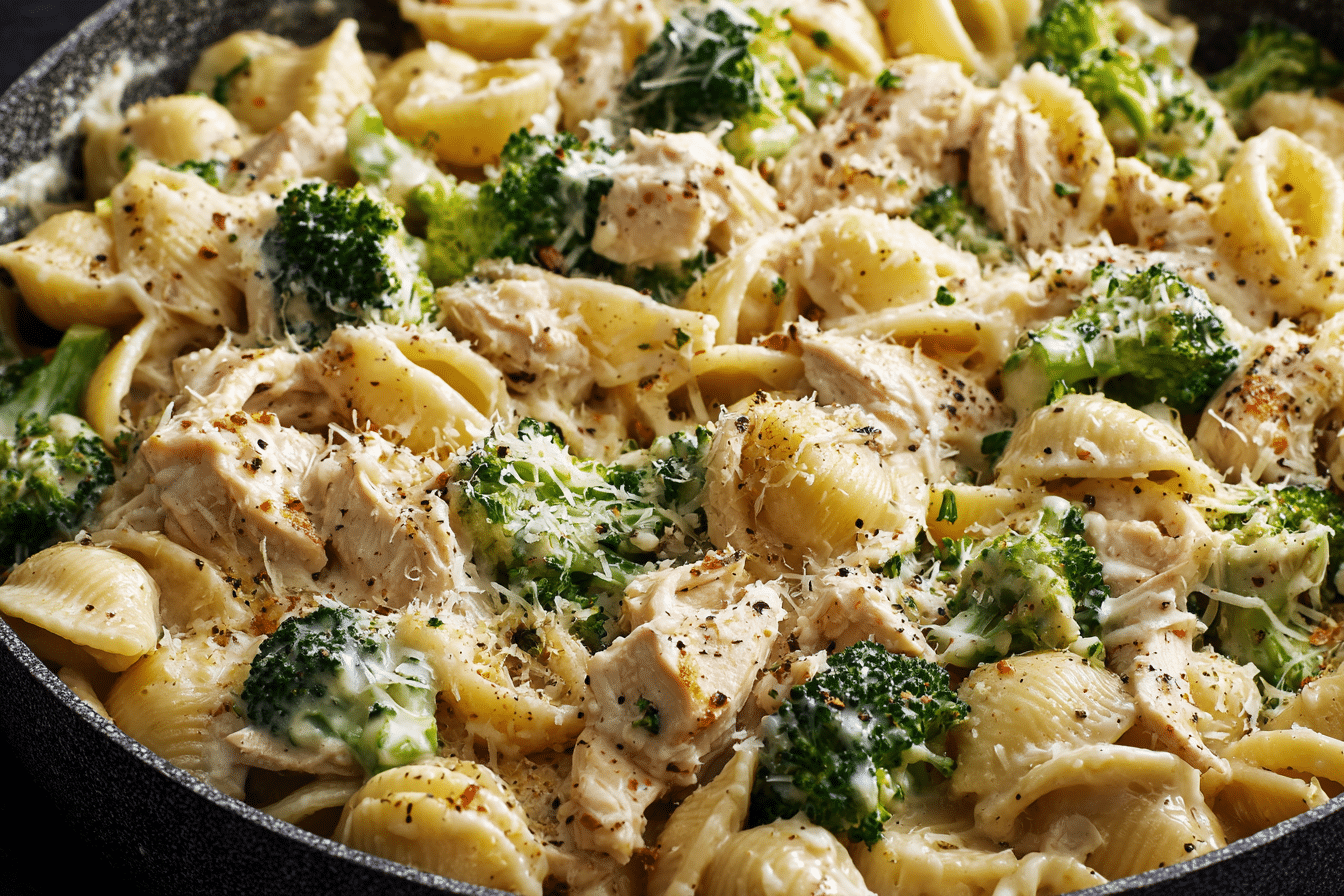 Creamy Rotisserie Chicken Broccoli Pasta combines tender shredded chicken, fresh broccoli, and short pasta in a rich, garlic-Parmesan cream sauce — ready in just 30 minutes for a comforting weeknight meal.