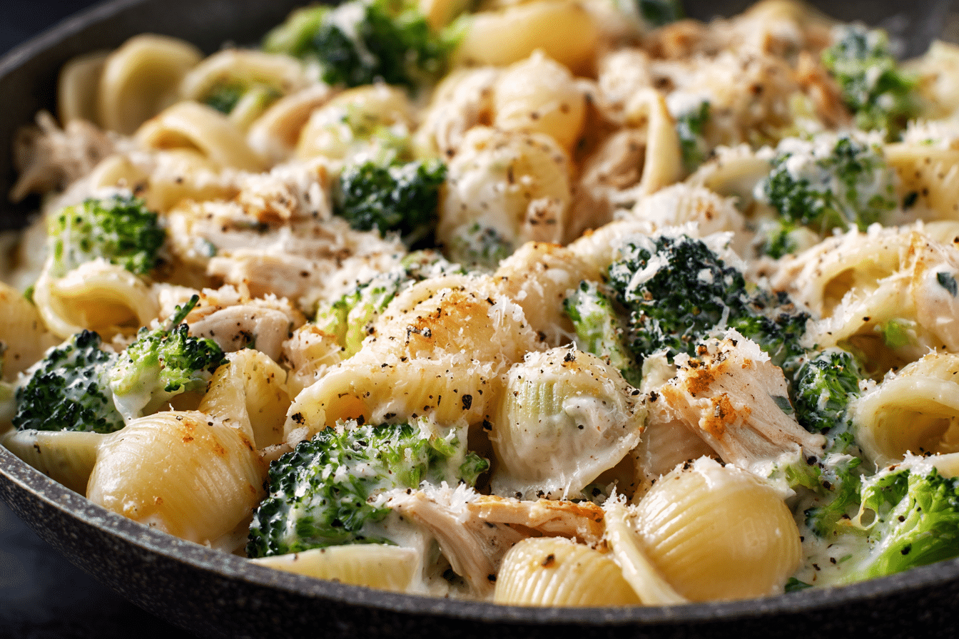 Creamy Rotisserie Chicken Broccoli Pasta combines tender shredded chicken, fresh broccoli, and short pasta in a rich, garlic-Parmesan cream sauce — ready in just 30 minutes for a comforting weeknight meal.