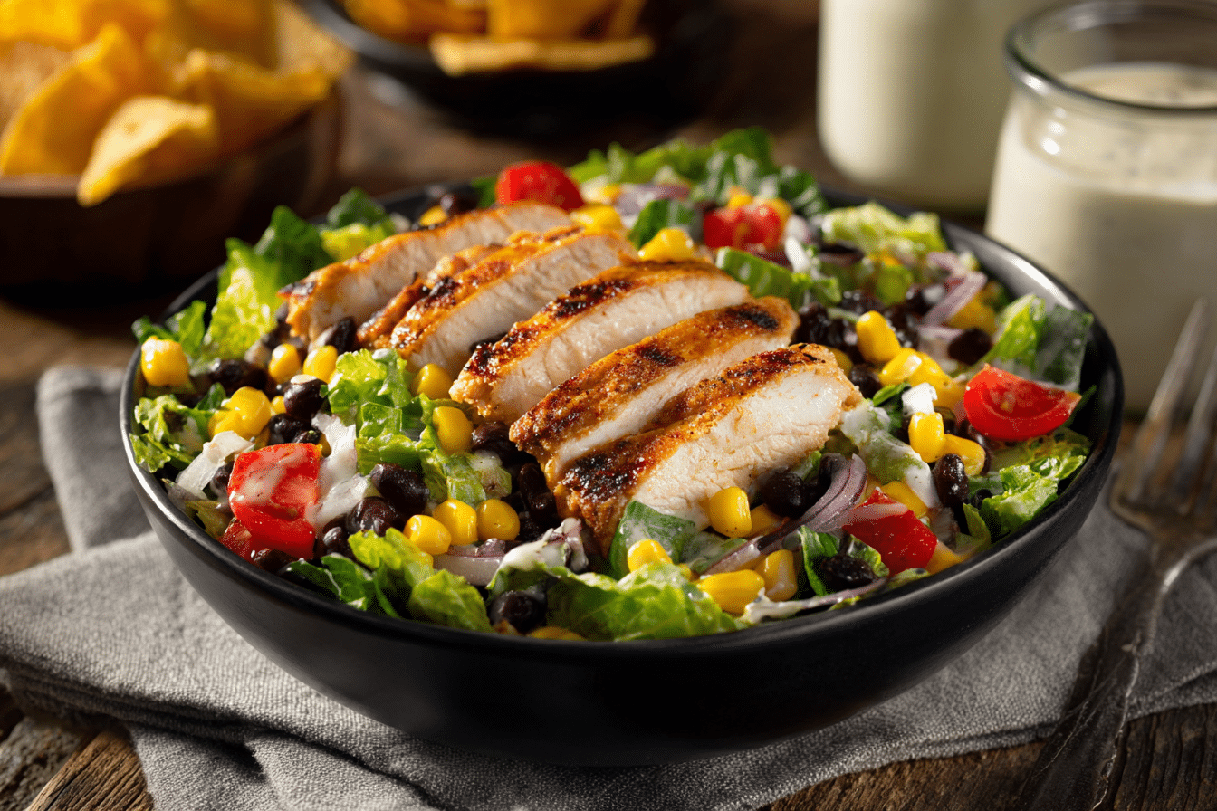 High protein: With chicken, beans, and Greek yogurt, this salad delivers a satisfying protein punch.