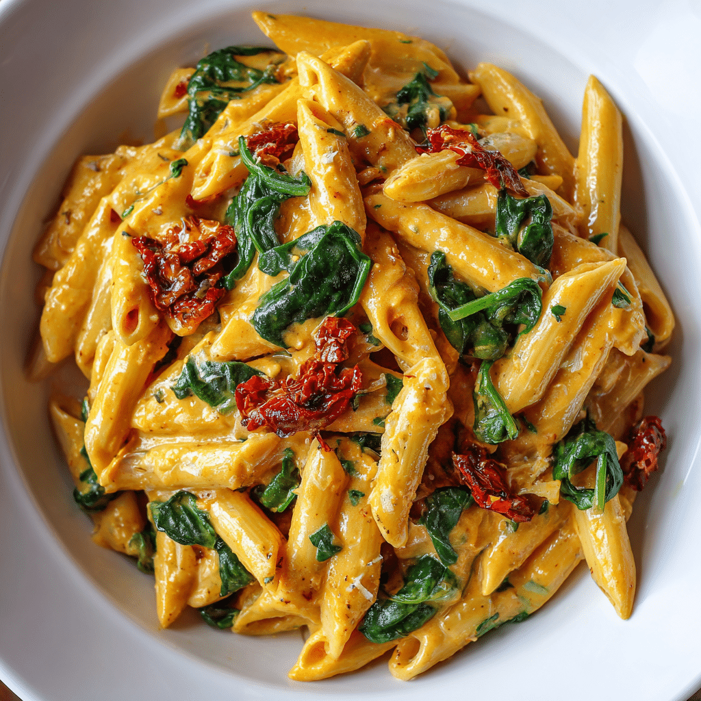 With the sweet burst of tomatoes, the silky wilted spinach, and a garlicky olive oil or creamy Parmesan base, this recipe is satisfying without being heavy. Whether you’re keeping it vegan or adding a touch of cheese, this pasta is always a reliable go-to.