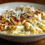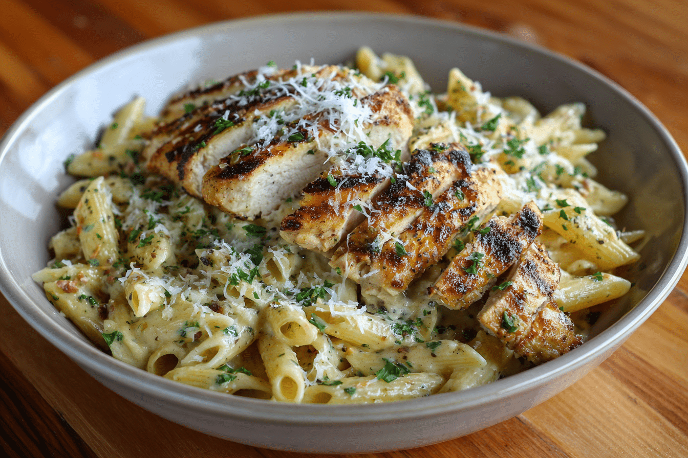 Creamy, garlicky Parmesan chicken pasta made in one pan. This easy recipe combines juicy chicken, a silky sauce, and tender noodles for a satisfying weeknight dinner.