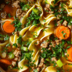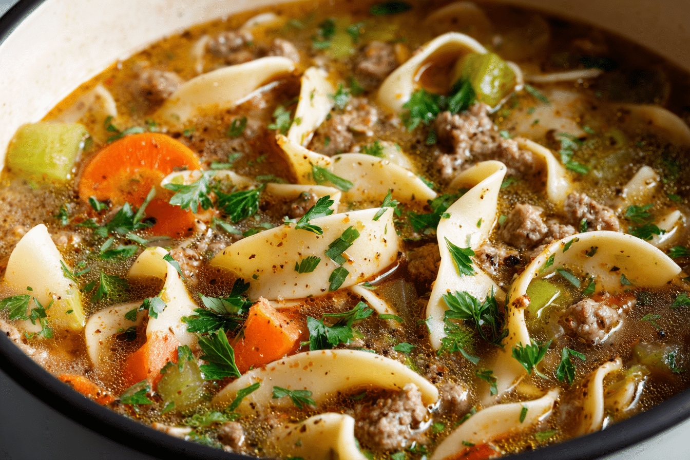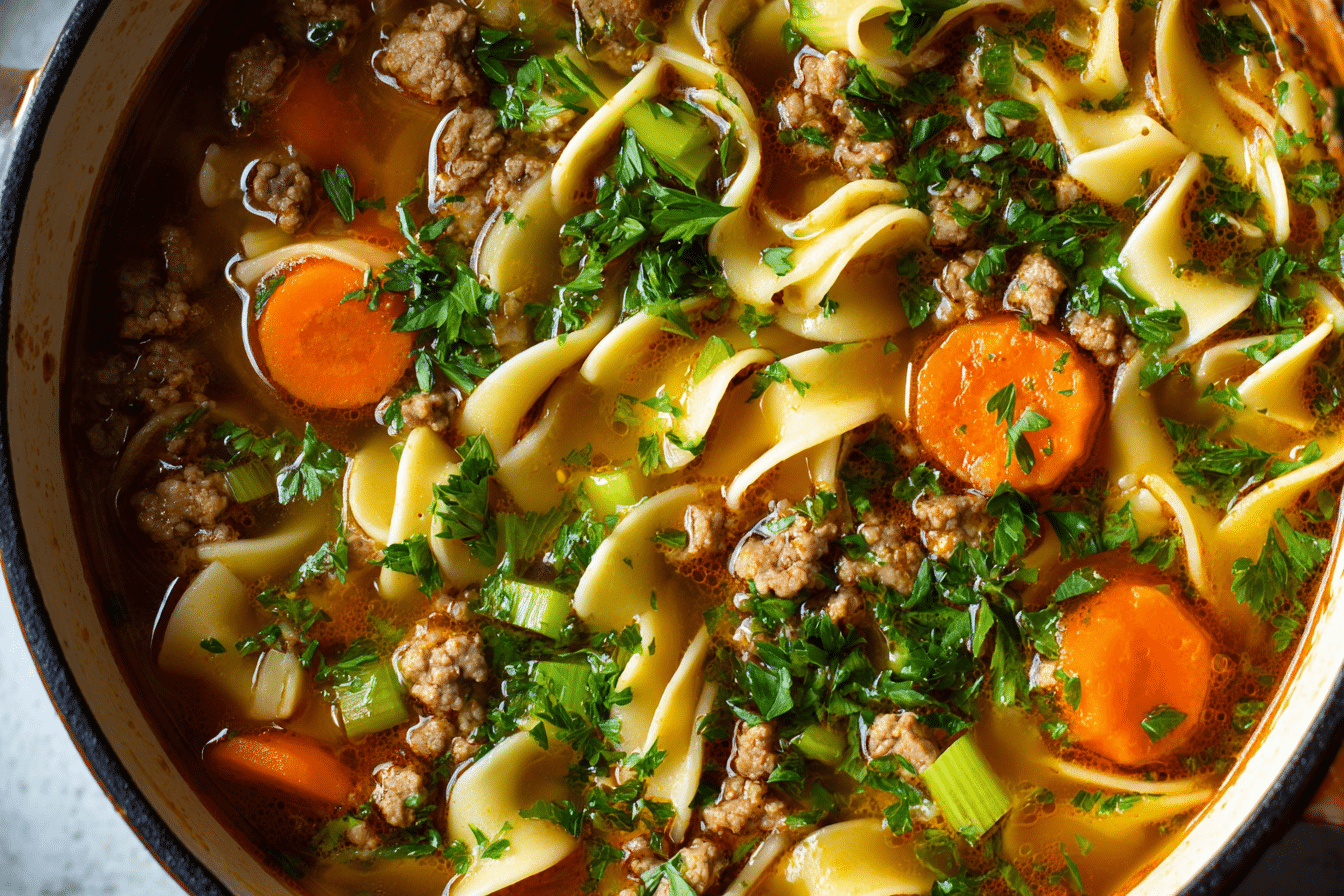 Let’s look at each core ingredient and how it contributes to the rich flavor and texture of Hamburger Noodle Soup — along with tips and substitutions to suit different diets or pantry needs.