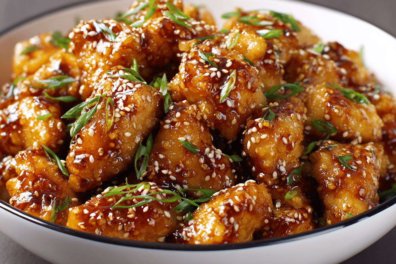 Easy honey sesame chicken is a quick, sweet-savory stir-fry featuring tender chicken coated in a sticky honey-soy glaze, finished with sesame seeds and scallions.
