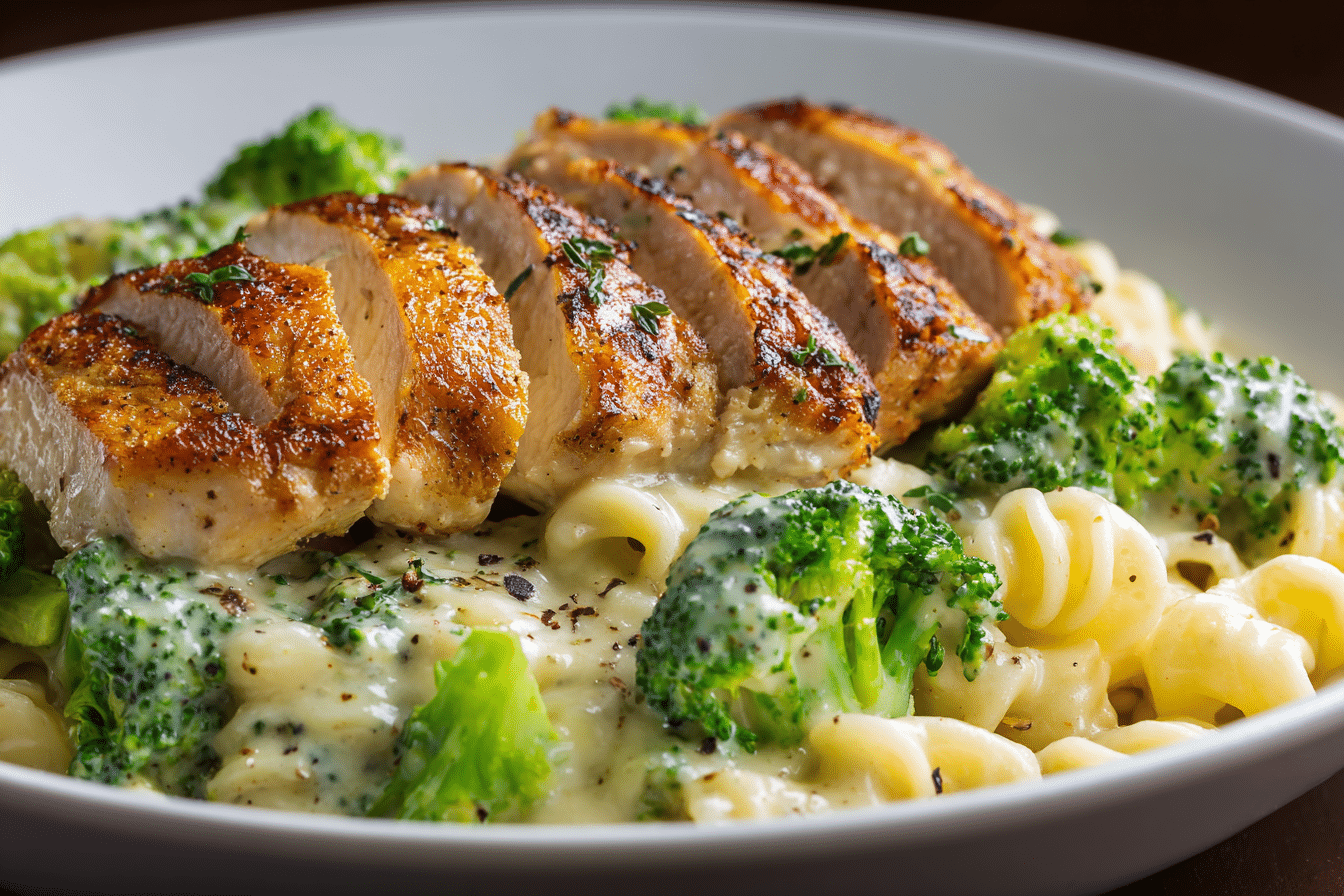 A creamy, satisfying chicken Alfredo made with Greek yogurt, milk, and Parmesan — ready in 30 minutes and perfect for a low-calorie, high-protein meal.