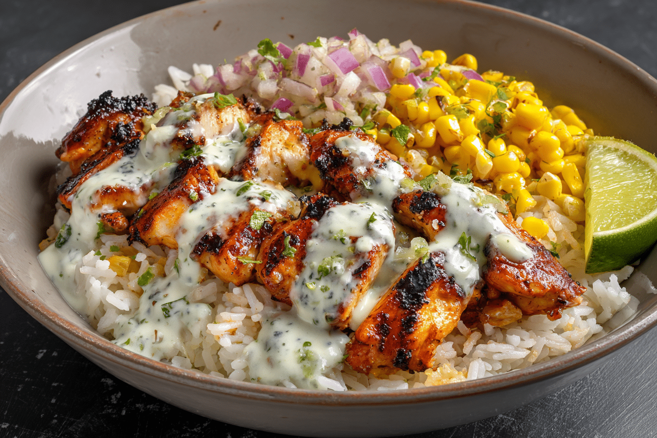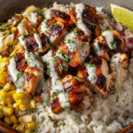 If you love bold flavors, creamy sauces, and satisfying meals that come together in one bowl, this Easy Street Corn Chicken Rice Bowl is sure to be a new favorite. Inspired by elote (Mexican street corn), this bowl blends juicy spiced chicken, charred corn, fluffy rice, and a creamy chili-lime sauce into a vibrant, crave-worthy dish — all made in under 40 minutes.