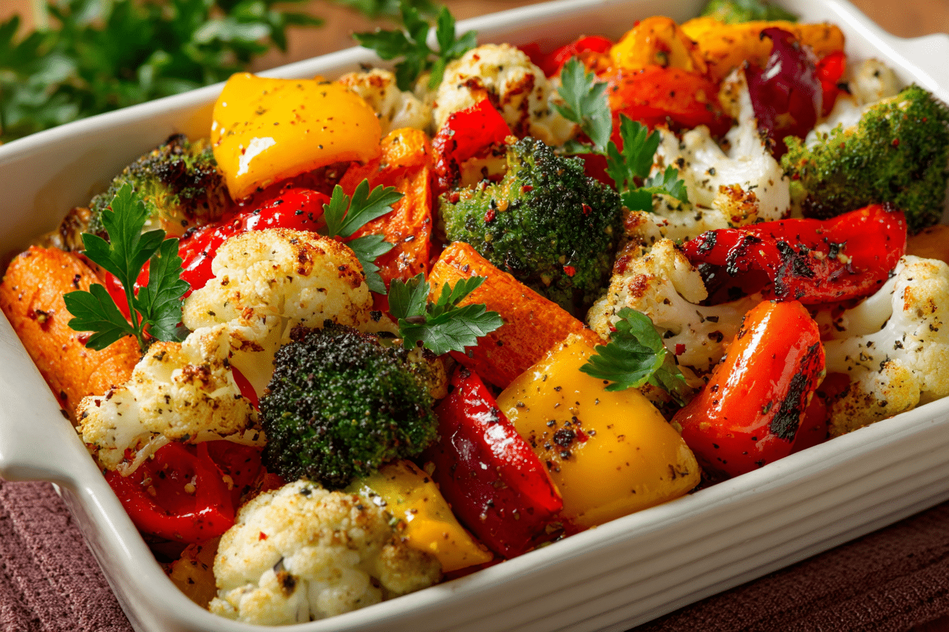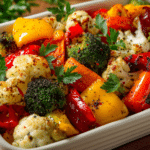 The magic comes from roasting. As the vegetables cook at high heat, their natural sugars intensify, and garlic-infused olive oil transforms them into something truly crave-worthy. Whether served warm out of the oven or tossed into grain bowls, pasta, or salads, these vegetables are endlessly useful and always a hit.