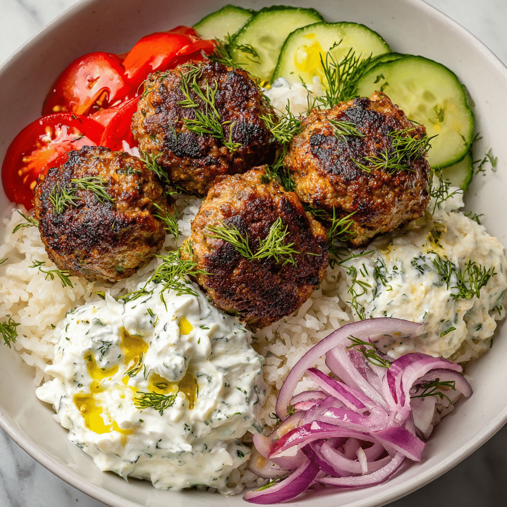 • Meal Prep: Store meatballs, tzatziki, and grain separately for 3–4 days.