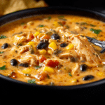 With tender shredded chicken, sweet corn, black beans, fire-roasted tomatoes, and a warming blend of spices, this soup simmers slowly, allowing every ingredient to meld beautifully. The result is a thick, brothy, slightly spicy dish that’s ideal for chilly nights, meal prepping, or feeding a crowd with minimal fuss.