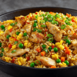 High Protein Chicken Fried Rice is the perfect fusion of satisfying comfort food and fitness-friendly fuel. Packed with lean chicken breast, fluffy scrambled eggs, crisp vegetables, and protein-rich rice, this one-pan meal delivers bold flavor and over 40 grams of protein per serving—all in about 30 minutes.