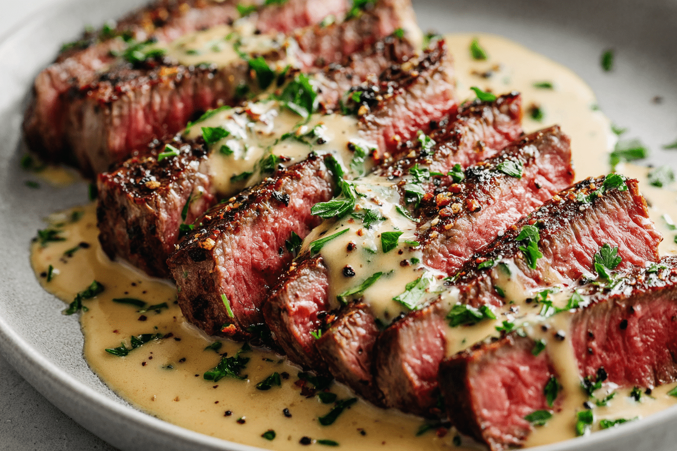 Whether you’re cooking for date night, a celebratory dinner, or just want something extra special on a weeknight, this recipe delivers bold flavor with minimal effort. The steak is seasoned and seared to form a golden crust, then paired with a sauce that’s creamy, garlicky, and infused with hints of butter, herbs, and Parmesan.