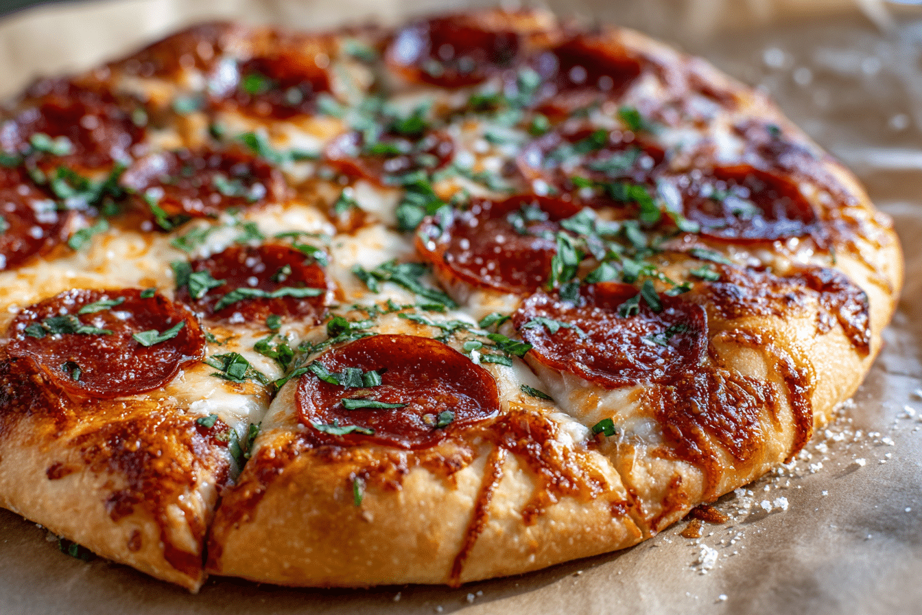 Let pizza rest for 1–2 minutes, then slice and enjoy.