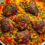 • Sear the chicken on both sides until browned, about 3–4 minutes per side. Remove and set aside (they’ll finish cooking with the rice).