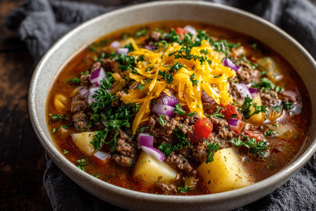 Hearty Cheesy Ground Beef Soup – A Cozy One-Pot Favorite