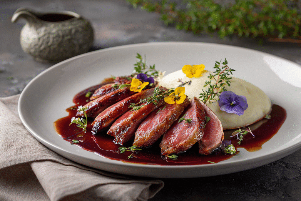 Seared duck breast with cherry sauce is a luxurious dish that pairs the deep, savory richness of duck with the sweet-tart vibrance of cherries. Popular in French and modern European …