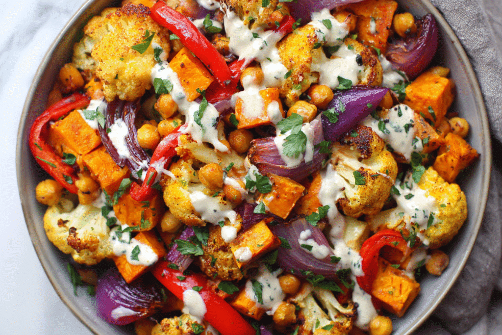 This Roasted Veggie Bowl with Tahini Yogurt Sauce is a colorful, vibrant dish that turns simple vegetables into a deeply satisfying, nourishing meal. Roasting brings out the natural sweetness and …