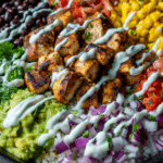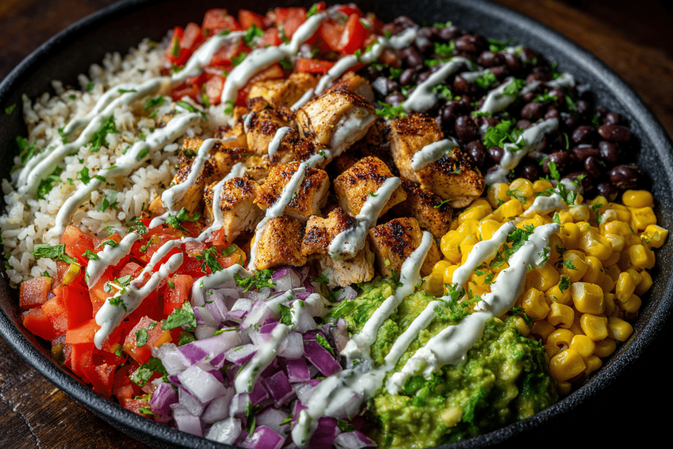 This Quick & Easy Low-Calorie Chicken Burrito Bowl brings all the flavor and satisfaction of your favorite Mexican-inspired takeout—without the extra calories or heavy ingredients. Juicy spiced chicken, fluffy cauliflower rice, fresh veggies, and a zesty lime crema come together in one colorful, customizable bowl that’s perfect for meal prep or weeknight dinners.