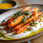 Roasted Carrots with Whipped Ricotta and Hot Honey is the kind of dish that turns a humble vegetable into something luxurious and unforgettable. It combines earthy, caramelized carrots with cool, creamy ricotta, and finishes with a spicy-sweet drizzle of hot honey that brings everything into balance.