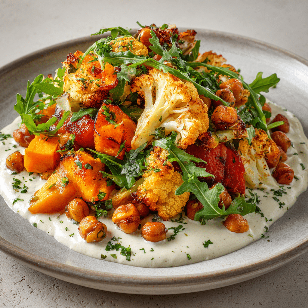 Golden roasted vegetables form the heart of this bowl, while a creamy, tangy tahini yogurt sauce ties everything together with a Mediterranean flair. This recipe is flexible, family-friendly, and perfect for meal prepping.