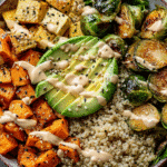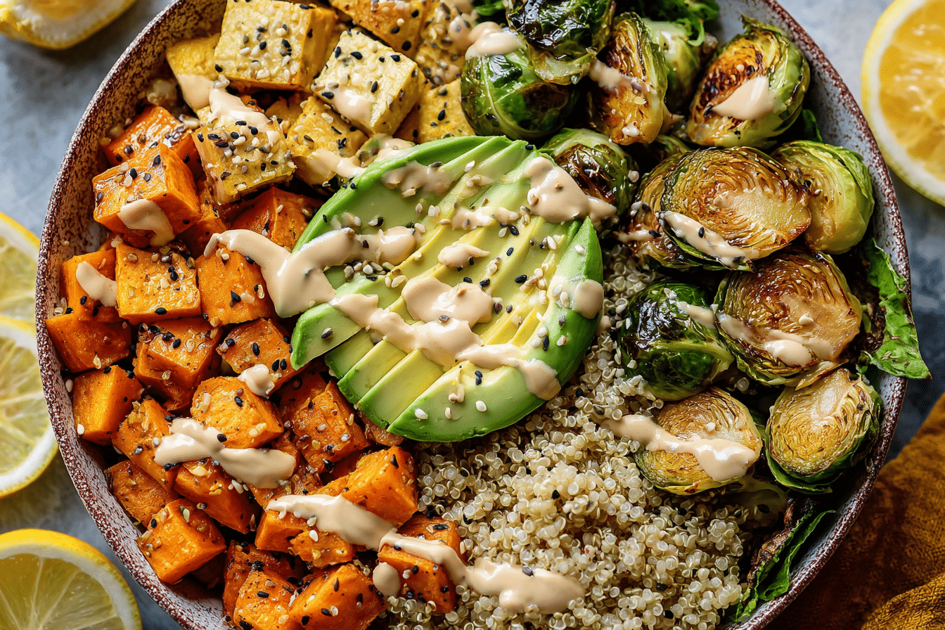 In this version, we focus on roasted seasonal vegetables, hearty grains, and a punchy tahini or lemony yogurt dressing. It’s a satisfying, customizable dish perfect for meal prep, weeknight dinners, or post-workout refueling.
