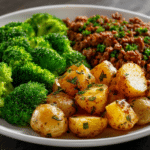 This Savory Ground Beef with Herb-Roasted Potatoes & Steamed Broccoli is a no-fuss, well-rounded dinner that brings bold flavor and nourishing comfort to your plate. Seasoned ground beef is pan-seared with garlic and spices, paired with crispy roasted potatoes tossed in fresh herbs, and balanced with vibrant, lightly steamed broccoli for a complete meal that satisfies without being heavy.