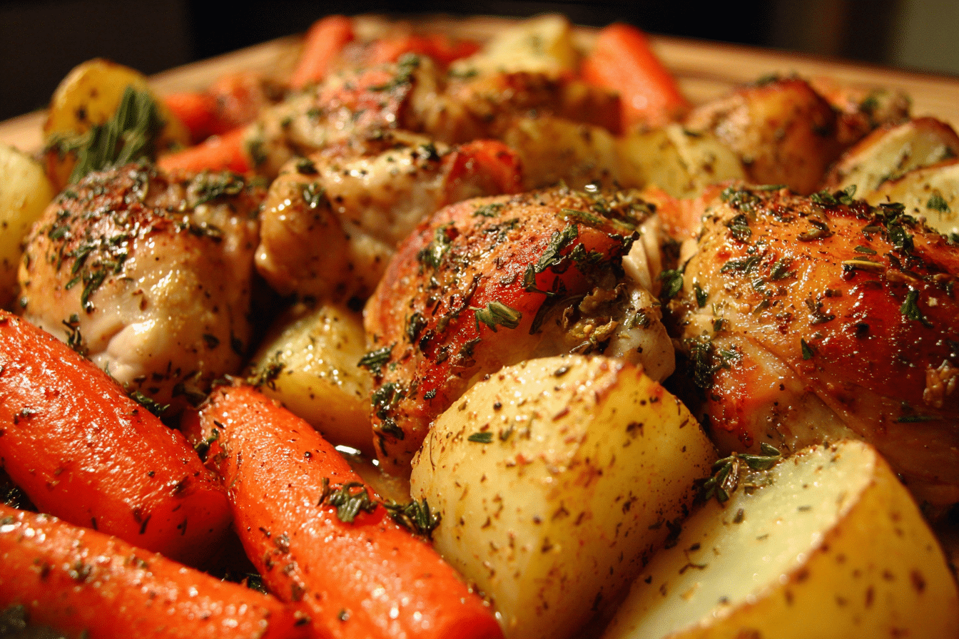 Cover and cook on LOW for 6–7 hours or HIGH for 3–4 hours, until the chicken is cooked through (165°F internal temperature) and vegetables are fork-tender.