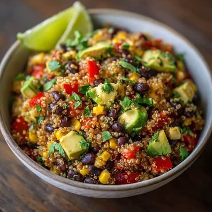 Fresh, bold, and loaded with color, this Southwest Quinoa Salad is a vibrant mix of fluffy quinoa, black beans, corn, avocado, and crunchy veggies tossed in a zesty lime-cumin dressing. It’s a perfect meatless main, picnic side, or meal-prep lunch that tastes even better the next day.