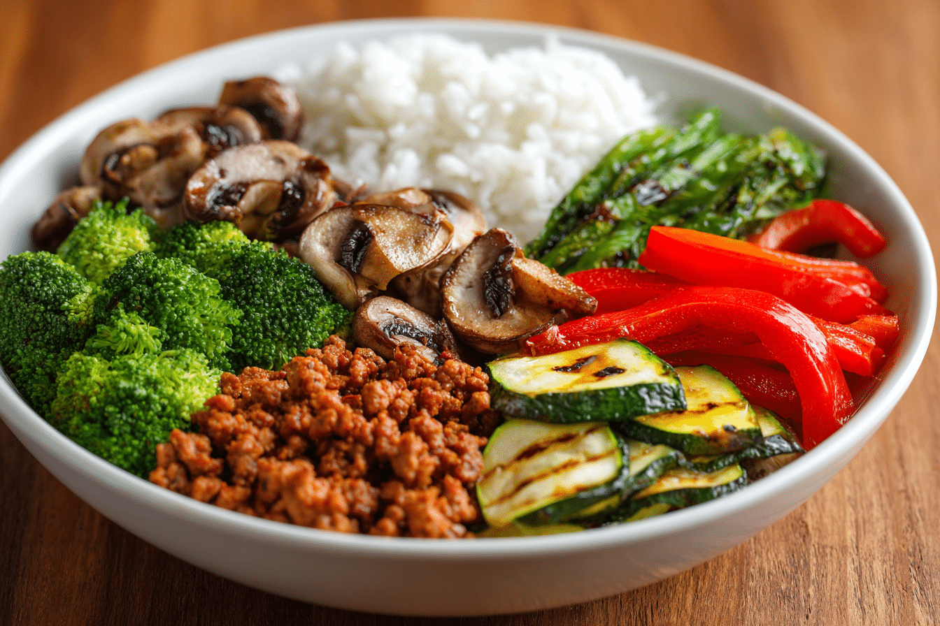 • Lean protein: Ground beef (or substitute) provides iron, B12, and complete protein.