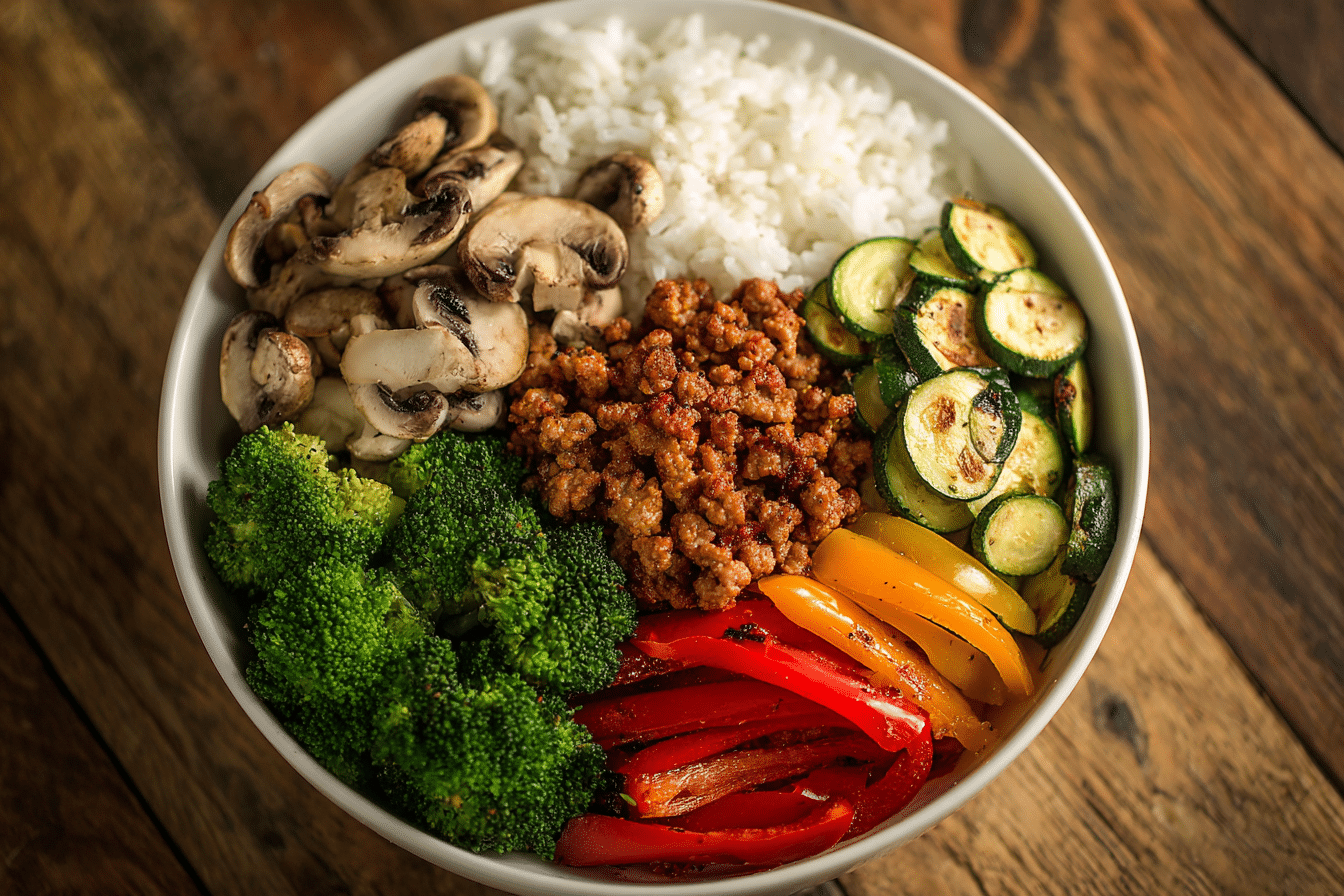 Spicy Ground Beef Stir-Fry Bowl with Garlic Veggies & Steamy Rice – A Flavor-Packed 30-Minute Meal