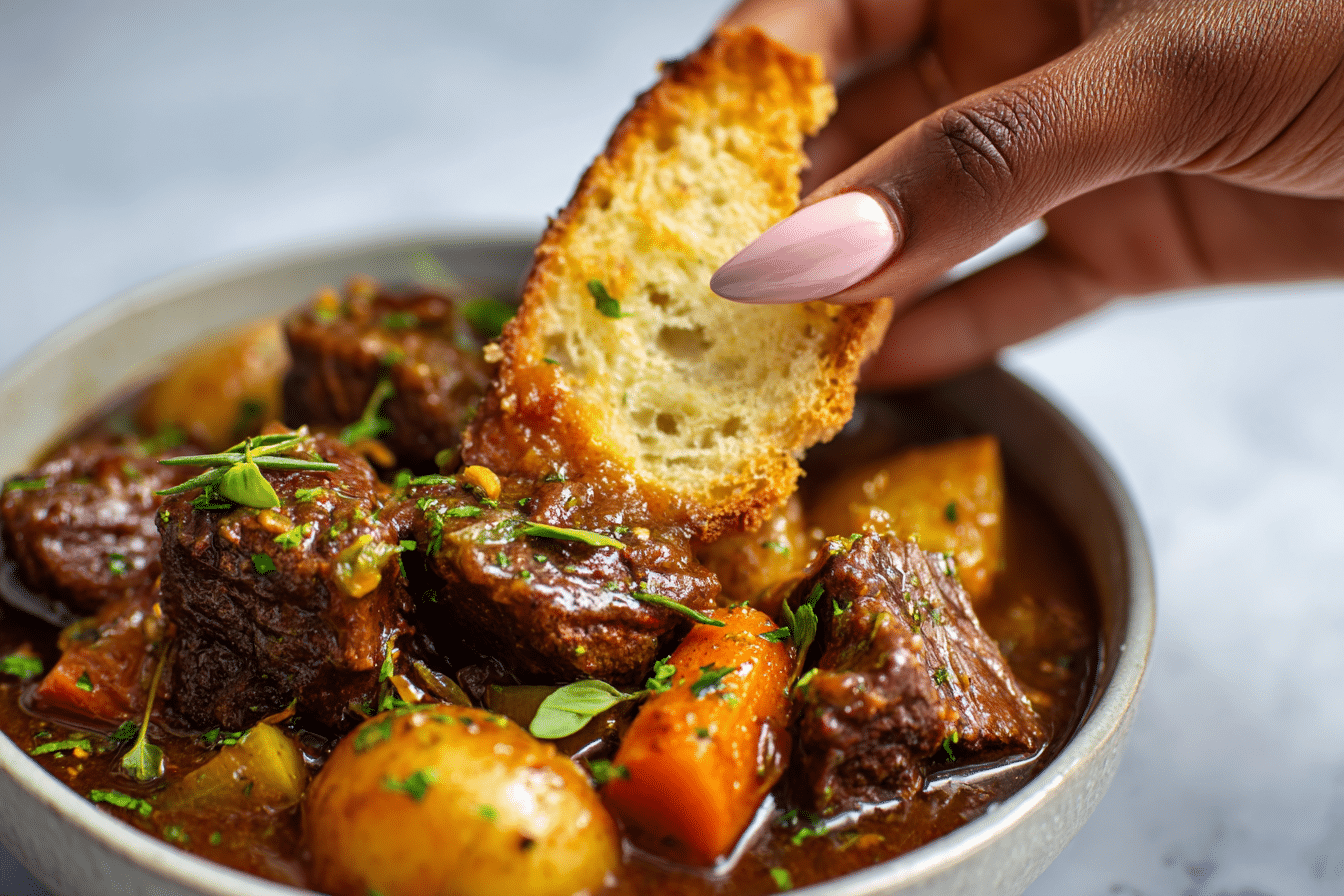 Make It in a Slow Cooker: After searing the beef and sautéing the aromatics, transfer everything to a slow cooker. Cook on LOW for 7–8 hours or HIGH for 4–5 hours.